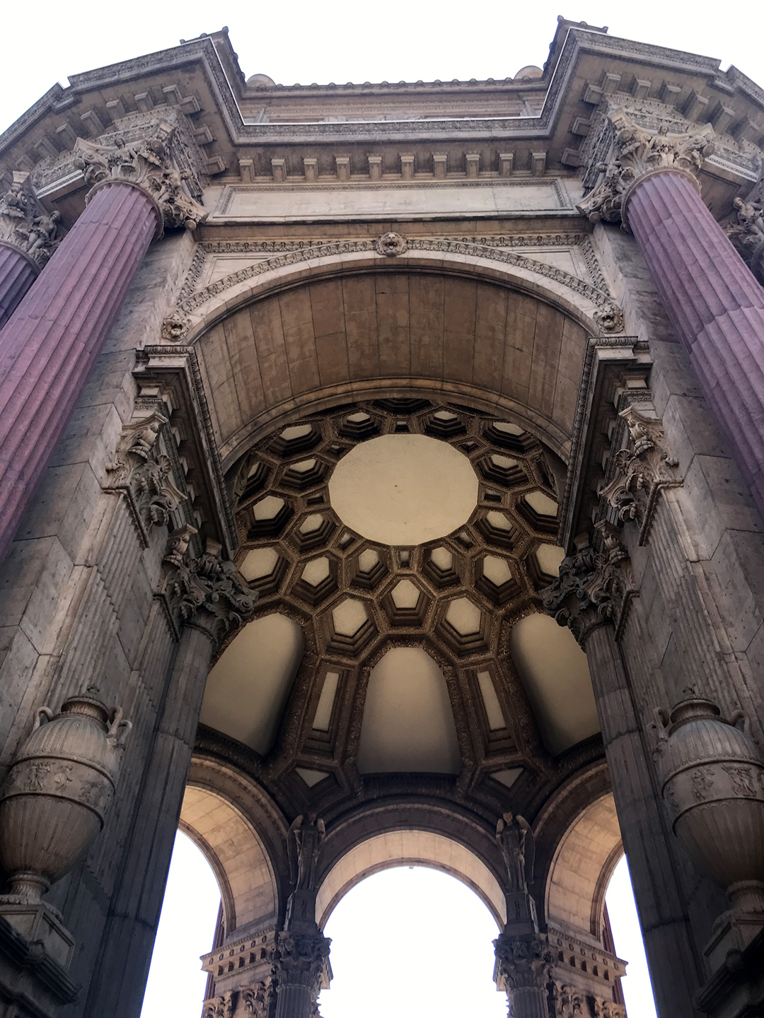 The Palace of Fine Arts is leftover from the 1915 Panama-Pacific Exposition. When I was growing up, it was the Exploratorium. They moved the Exploratorium to the piers, and now I think of the Palace of Fine Arts as a tourist attraction. I haven’t been there since the it was the Exploratorium! It was weird walking around and looking at it, instead of walking past it to grab a good place in line to get into the Exploratorium. I don’t think I really ever took the time to enjoy how beautiful the structure is!