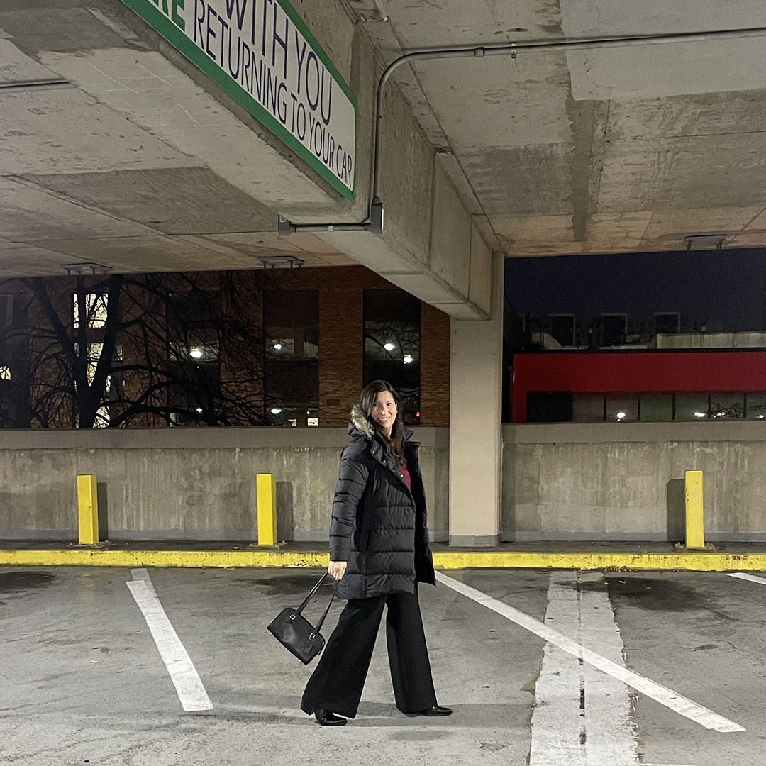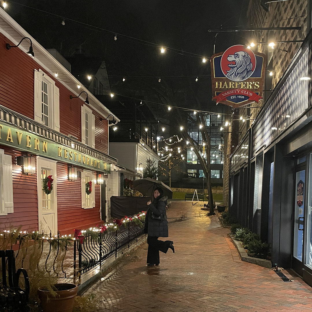 pictured: umbrella / earrings / sweater / coat (similar here) / nail polish / black trousers / handbag / black boots / food from The Tavern: arancini balls / Pross Scallops (so good!!) /