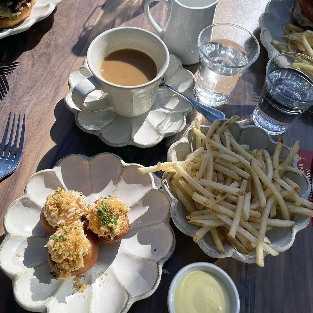 I enjoyed the Dungeness Crab Donuts and a side of French Fries. They were delicious! My husband and my son both ordered the hamburger with fries, they also enjoyed their meal. Highly recommend if you are local!