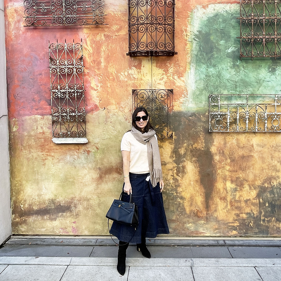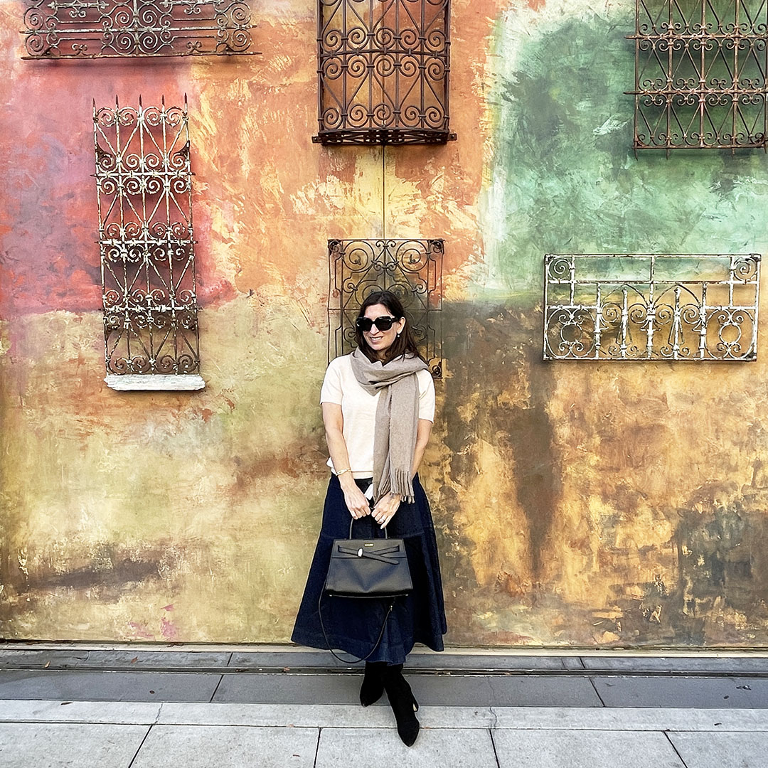 We enjoyed temperatures in the high 60’s during the Lunar New Year celebration at Santana Row, so this outfit worked out perfectly. Since the sun was shining, we ate brunch on the outdoor patio at Augustine. The food was delicious and we had close seats to the Lunar New Year entertainment.