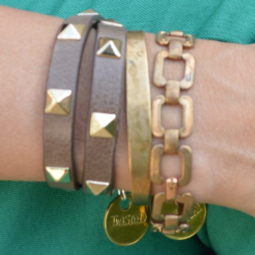 2) Tory Burch leather wrap bracelet (past season), C/O Twisted Silver “Netizen” bracelet and C/O Twisted Silver “Hipster” bracelet.