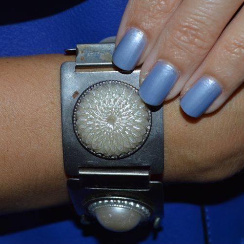 Last photo features Twisted Silver’s “Swank” bracelet paired with a “Foundation” leather wrap bracelet by Tory Burch. Similar can be found here.